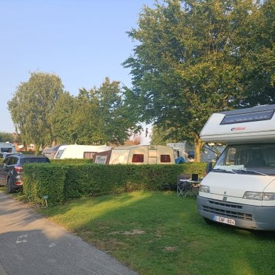 - 38 passagers (camping-car, tentes, caravanes) ombragées ou ensoleillées équipées de branchements électriques 10A. Entre 80 et 100 m² engazonnées, entourées de haies.